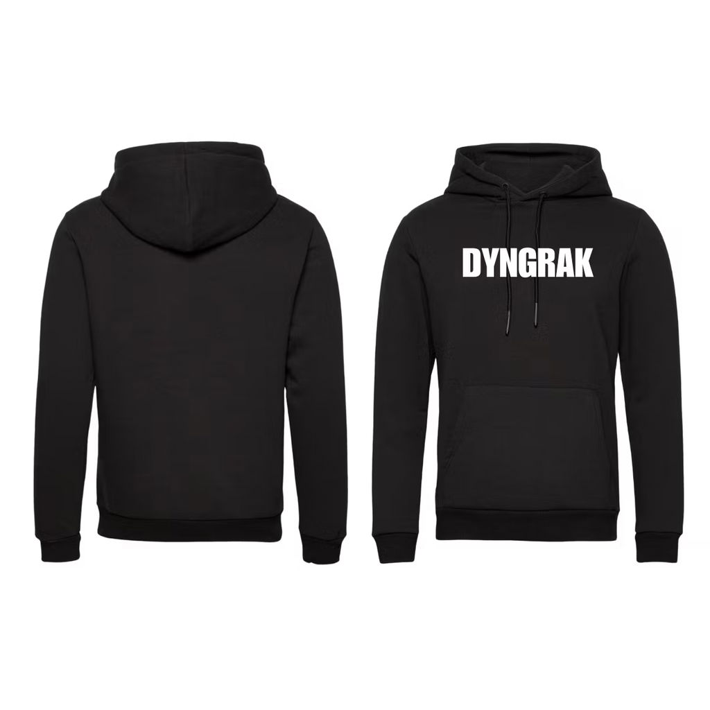 Beskrivning av DYNGRAK Hoodie DYNGRAK Hoodie. Finns i storlekarna Small, Medium, Large, Extra Large Och Extra large. Tryck på Framsida!